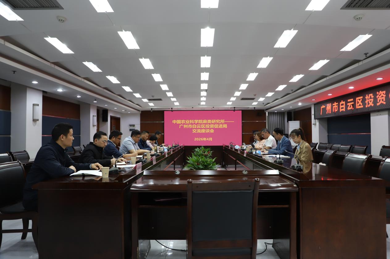 4月15日,广州市白云区投资促进局党组书记郑伟居一行赴中国农业科学院麻类研究所开展科技合作调研,围绕生物制造领域科技成果转化、产学研用深度融合等主题座谈交流。中麻所副所长(主持工作)、党委副书记马雄风、副所长侯春生及相关创新团队、职能部门负责人参会。